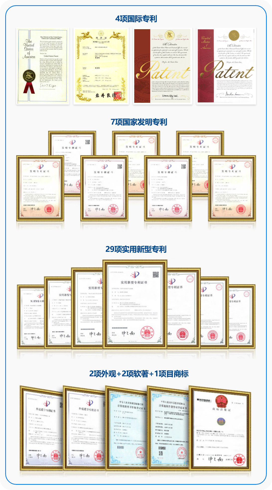 三、29项实用新型专利证书